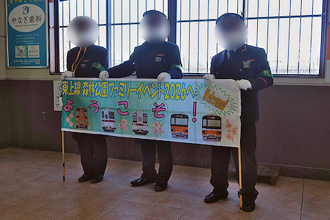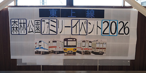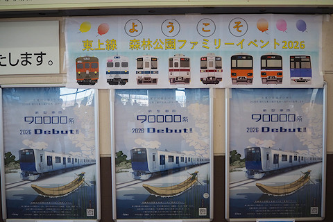 | こちらは森林公園駅の改札階コンコースに掲示されていた「ようこそ 東上線 森林公園ファミリーイベント2026」の横断幕。駅構内には今年導入が予定されている90000系のポスターが数多く掲出されていましたが、本イベントでは90000系の展示がないことが事前に告知されていました。 | |