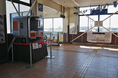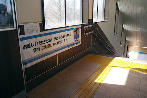 ![]() 改札階コンコースの1・2番ホーム側階段近くには 50090型のモックアップとイベント横断幕 |