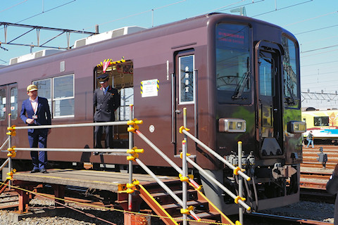 | 子ども制服体験・記念撮影コーナーには8000系81111編成が展示。81111編成と言えば、長くセイジクリーム塗装で運用されていましたが、昨年の東上線全通100周年を記念し、当時の東上鉄道で使用されていた客車の「ぶどう色1号」をイメージした塗装に変更されていました。普段、東上線を利用しない私にとっては塗装変更後、初めての出会いでした。 | |