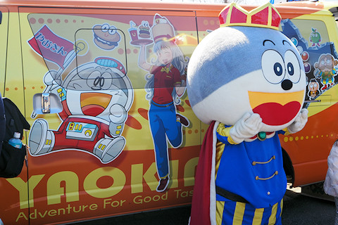 ![]() 会場奥、キッズエリアの一角には「うまい棒」でおなじみの「やおきん」が出店。 やおきん車両が展示され、着ぐるみも登場。 「やおきん」は東京都墨田区に本社があり、東武鉄道と同じことから出店しているのでしょうか |