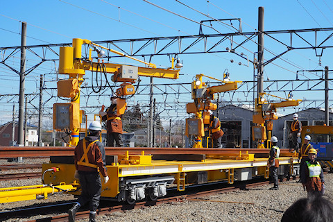 ![]() 11:10からスタートしていたレール取り卸し実演を見学 |